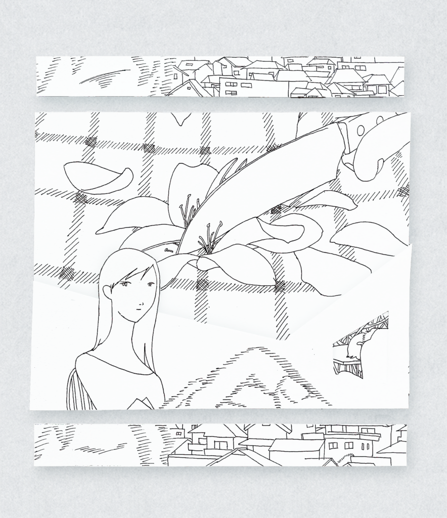 これは、上で語ったアスタリスクに挟まれた断片的な文章のように、一見関連性のないような景色が、並んだり重なったりすることによって生まれる物語性やその間に存在する空白のようなものが視覚的に作れたら、という意図で行ったものです。