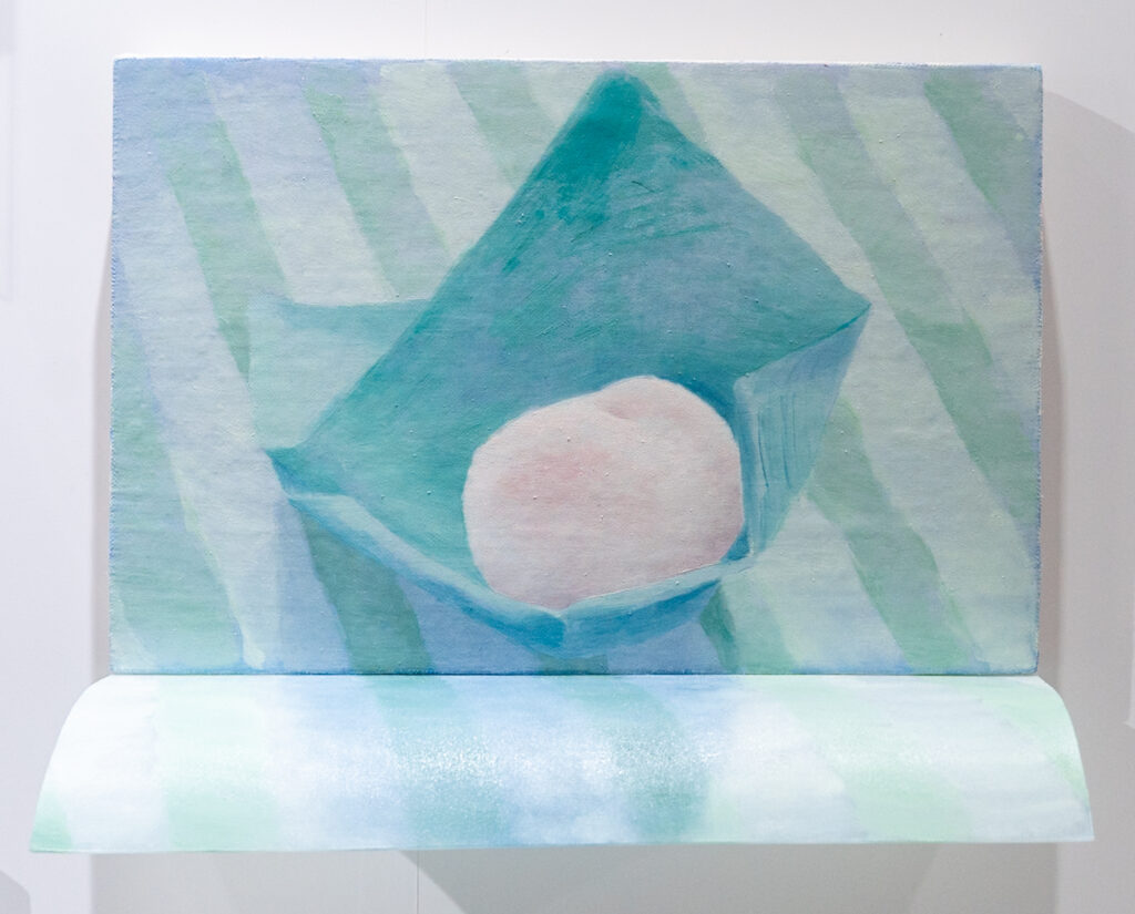 「Peach 2」/ 255 x 335 x 100 mm / キャンバスに油彩、アクリル板に油彩、釘 / 2025